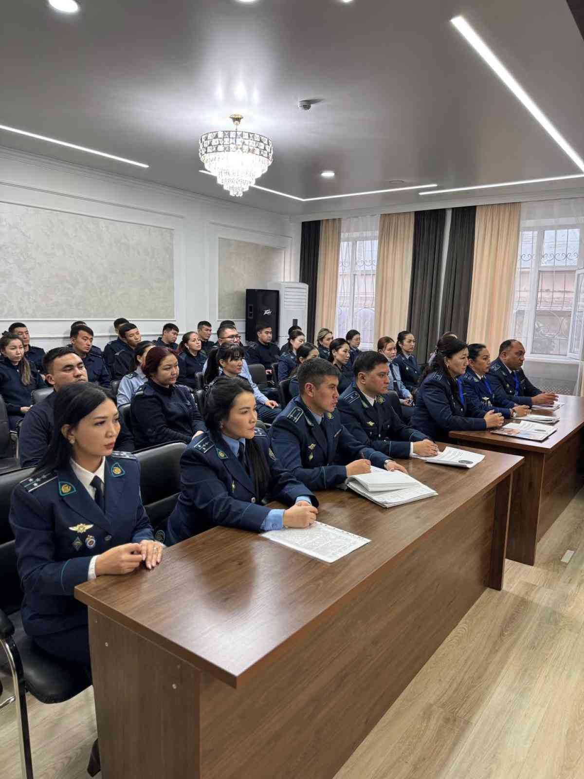 Алдымен департаменттің мәжіліс залында облыстық полиция департаментінің бастығы Қайсар Сұлтанбаев, облыс әкімдігі ақпарат және қоғамдық даму басқармасының басшысы Жанболат Нұрмолдаұлы, ардагерлер кеңесінің төрағасы Турдалы Шералин және сала қызметкерлері арасында жиын өтті.